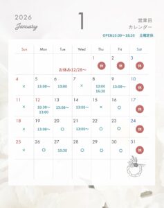 1月もたくさんの方にお会いできるのを楽しみにしております!