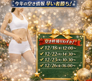 残り4枠!年末前にスッキリ美ボディへ「今年の空き情報」